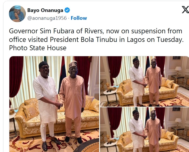 Fubara Visits Tinubu at home, lobby political comeback Gallery Fubara Visits Tinubu at home, lobby political comeback News, Politics Fubara Visits Tinubu at home, lobby political comeback By viralradio-rep|2025-06-04T04:55:17+00:00June 4, 2025|News, Politics| Read More 0